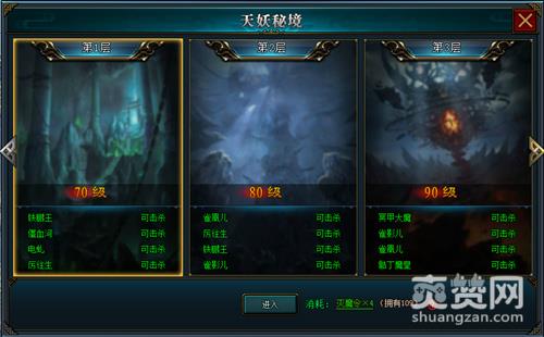 现在可以通过主城98:120直接传送到天妖秘境内。不同层级的天妖秘境有不同的BOSS镇守,一定要小心!