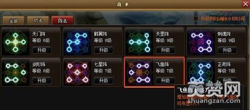 在923yx《神仙道》中,目前阵法有天门阵、鹤翼阵、天罡阵、刺魂阵、剑形阵、七星阵、飞鱼阵、正奇阵这八种。想获得这些阵法,分别需要达到不同的等级。阵法可以进行升级,大家平时获得的阅历值就是进行阵法升级的。