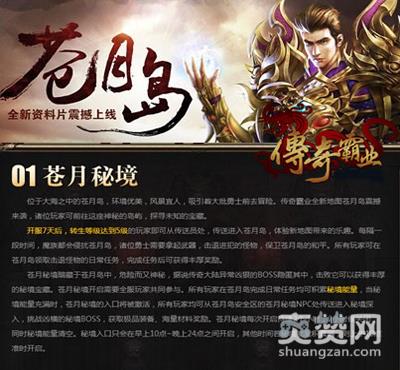 BOSS是可怕的,但宝藏是诱人的,而全新地图也是值得观赏的,所以开服7天后,转生等级达到5级的玩家可从传送员处,火速进入苍月岛。苍月秘境开启需要全服玩家共同参与。所有玩家在苍月岛完成日常任务均可积累秘境能量,当秘境能量充满时,苍月秘境的入口将被激活,所有玩家均可从苍月岛安全区的苍月秘境NPC处进入秘境深入,苍月秘境每次开启持续2个小时,2小时后关闭,同时秘境能量清空。同时,秘境入口只会在早上10点~晚上24点之间开启,其他时间若秘境能量积累满,则上午10点准时开启。