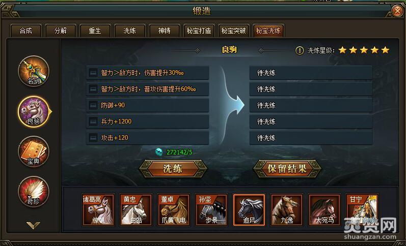 至此为止,突破全部完成。我们细细观察后发现,这匹良驹需要兵力越大越好,技能才能发挥得越到位。进行比较后我们发现,给新出的武将诸葛亮使用时是最最划算的。但是诸葛亮的武力偏低,智力偏高,所以洗点时我们应该这样洗。