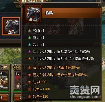追风秘宝属性5:兵力>敌方时,盾兵打弓兵伤害提升5%