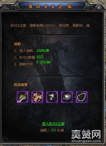 1、BOSS之家的BOSS数量多,而且多数都是玩家初期遇到的野外副本BOSS,玩家们很容易就能击败这些BOSS,拾取到掉落下来的装备!