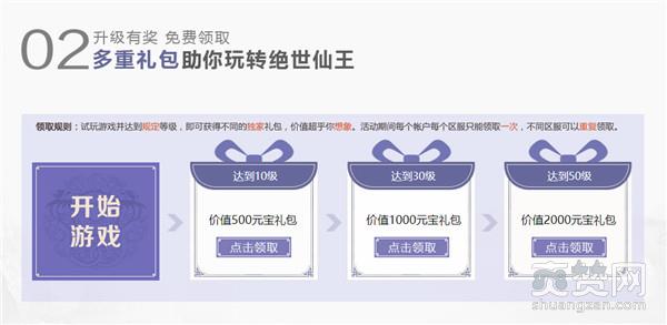 除了登录豪礼,还有多重礼包助你玩转37《绝世仙王》,当玩家试玩游戏并达到规定等级,即可获得不同的独家礼包,价值超乎你想象,但是要切记,活动期间,每个账户每个区服只能领取一次,不同区服则可以重复领取。
