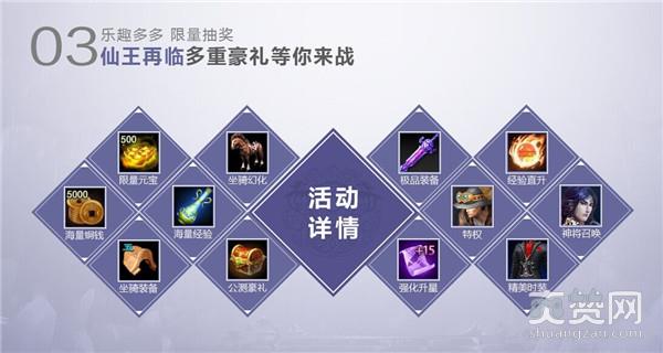 除了以上登录和升级可以获得奖励外,37《绝世仙王》还有多重豪礼等你来战,奖品包括:极品装备、海量经验、限量元宝、特权等等!详情请登录游戏官网,可了解更多有关于公测的消息!