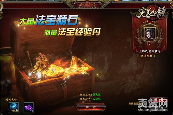 《完美红颜》中,玩家可通过参与“法宝灵台”玩法,逐层挑战越来越强大的镇守妖魔,从而获取海量法宝材料。同时,与“披风幻境”近似,挑战成绩最佳者也将受到每个参与该玩法的挑战者的景仰!