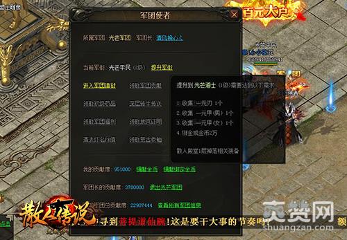 在威龙城-军团使者处可以看到军团玩法的详细。满六十级的玩家可以选择加入雷霆军团、光芒军团、烈焰军团中的任一。有句老话说得好,不想当将军的士兵不是好士兵,加入军团后当然是剑指军团长一职,想要担任军团长就需要有贡献度和军衔,军衔一开始可以通过收集指定装备来提升。军衔提高可以在军团中获得更多的福利,包括军领取军团贡献,军团药品,获得地宫证明,最高等级的军衔还可以领取荒古卷轴。