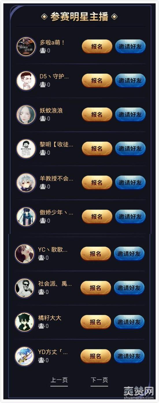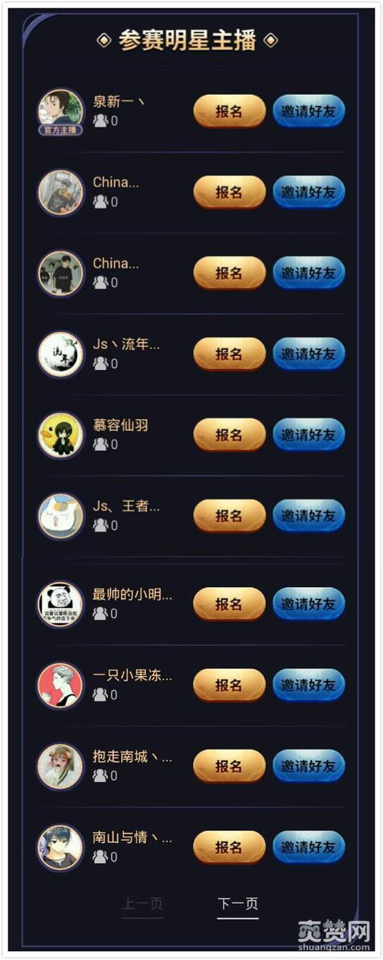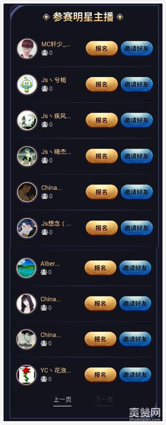1、总共30位主播代表30个战队,选取你最心仪的主播点击“报名”。