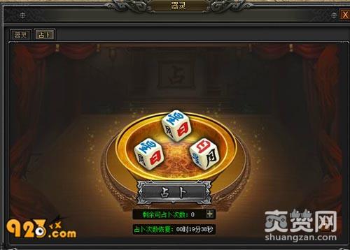 那么,923yx《战天》中占卜是干嘛的呢?这可是获得器灵的途径。通过占卜,大家可以获得器灵碎片或者月陨铁。骰子奖励3个日>3个月>3个星>其它情况,每小时恢复一次占卜次数,占卜次数为10及以上时不再时间恢复。