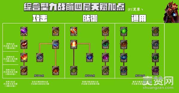 4、依次加满通用天赋的神装减免,攻击天赋的狂暴肆虐,以及防御天赋的庇佑之盾和生命壁垒。最后加10点到神装加持,共计180点