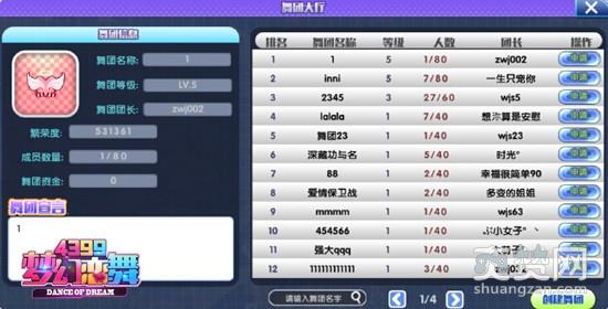 如果你觉得自己够强大,也可以点击舞团大厅里右下方的创建舞团按钮,创建属于自己的舞团。成功加入或者创建舞团之后,我们就能进入舞团大厅了。