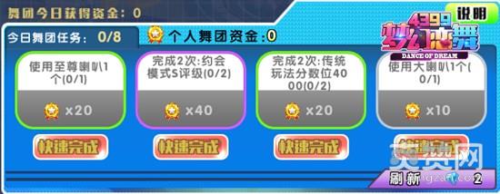 玩家每天可以领取10个不同品质的舞团任务,任务品质越高获得的奖励也越高噢。