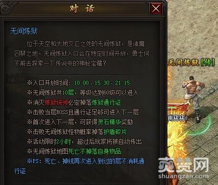 3) 进入下一层需要门票“炼狱通行证”,击败每层的炼狱统领即可获得