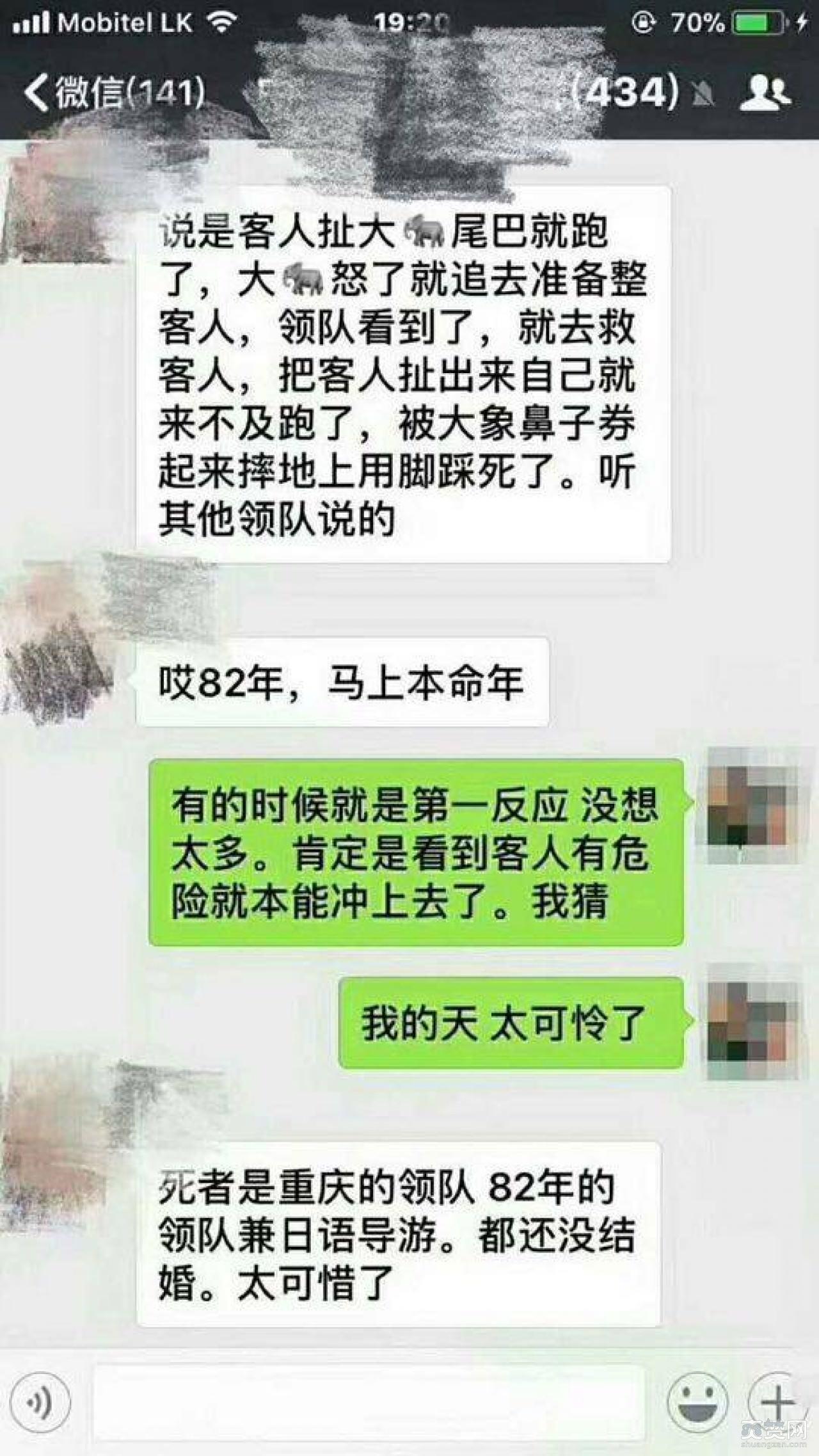 据悉,上前救人的重庆领队何永杰今年35岁,于四川外语学院毕业,与他相熟的导游均表示何永杰为人开朗、热心助人。泰国近年亦不时发生大象伤人的事件,如清迈一头大象在2015年突然发狂用象牙刺死驯兽员,同年亦有一头大象在泰国东部的沙滩上踩死一名28岁的男游客,并致其同件受伤。苏梅岛去年2月亦有一名36岁的英国人遭大象以象牙刺死。