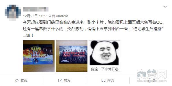 近日就有网友爆料,称被塞吃鸡外挂小卡片。