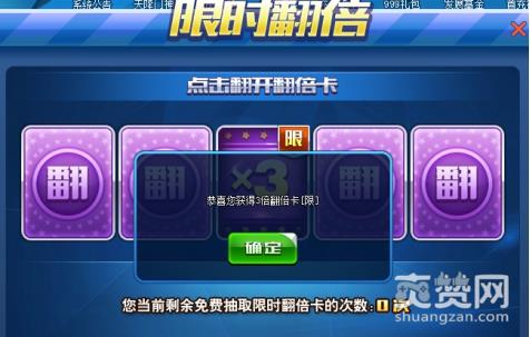 1、活动期间,每位玩家有一次免费抽取限时翻倍卡的机会;