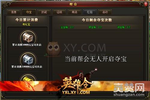 加入XY游戏《英雄令》帮会,XY游戏《英雄令》会首先送给玩家宝箱大礼。在XY游戏《英雄令》帮会夺宝界面,玩家累计消费达标,即可每天开启“铜宝箱”、“银宝箱”、“金宝箱”获得丰厚奖励!有权利就必须承担义务,成功加入帮会后,XY游戏《英雄令》玩家需缴纳帮贡才能提高自己的帮会地位。XY游戏《英雄令》帮会每日征战挑战神将可产生大量帮贡、银两、道具奖励,积累帮贡后玩家可自由学习帮会技能、购买帮贡商品,帮贡当钱花,简直萌萌哒!