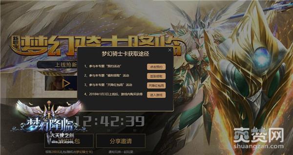 所有玩家只要成功预约37《大天使之剑》的梦幻骑士,即可领取200元礼包,此外,玩家还可参与“天降红包雨”活动来获得梦幻骑士,没时间上网的玩家可于2018年1月3日新职业上线后,在游戏内购买获得,这样就不怕错过体验新职业的机会啦!