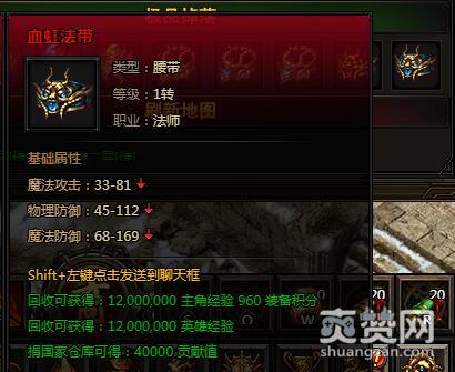 魔会掉落深渊恶魔徽章、血虹战盔(1转)、血虹法盔(1转)、血虹道盔(1转)、血虹战链(1转)、血虹法链(1转)、血虹道链(1转)、血虹战带(1转)以及血虹法带(1转)。