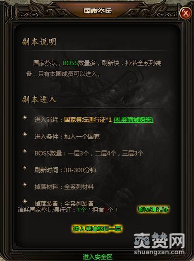 先让我们来看看第一张地图。帝鸿祭坛二层,传送到传送员处后,还要去礼券商城购买一个国家祭坛通行证,有了它才能进入帝鸿祭坛的第一层。
