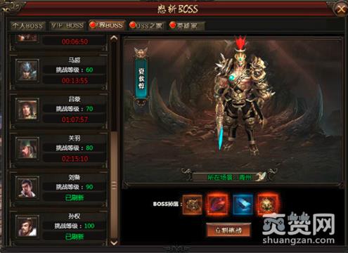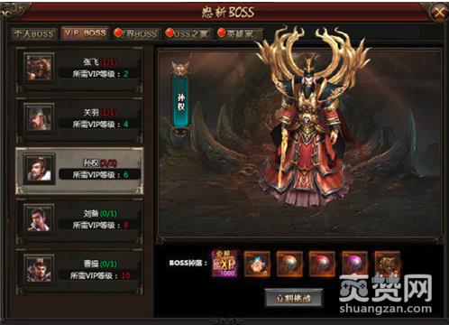 各位三国大佬所占据的是会员BOSS也是凶险万分!孙权、刘备、曹操三足鼎立,更有张飞关羽从旁助阵,只要达到指定VIP等级即可挑战,每天一次,充值元宝即可提升VIP等级,只要你够实力,就可以将橙装、升星石轻松带回家!