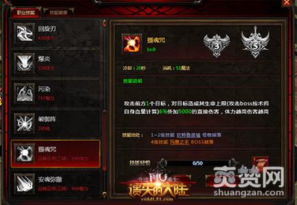 摄魂咒是《遗失的大陆》中最强的单体输出技能,单看技能效果直接造成敌人血量百分之六的伤害就足以让任何敌人畏惧了。而且随着技能等级和玩家体力值的提高,技能的伤害也会随之提高,后期召唤术师一记“摄魂咒”就能轻松打掉敌人几万的血量,想想就知道多强力了。