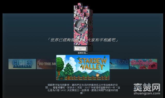 一年一度的 Steam 大奖迈入第二届,本次于 2017 年 11 月底开放玩家投票提名并在 12 月底进行为期近两週的投票,让玩家选出心目中的最佳游戏。