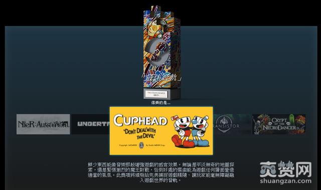 Valve 今日公布 2017 Steam 大奖得奖名单,硬派动作游戏《Cuphead》夺得「最佳音轨」和「比预期的也好太多」两座奖项,《绝地求生》、《巫师》系列等两款作品也纷纷获奖。