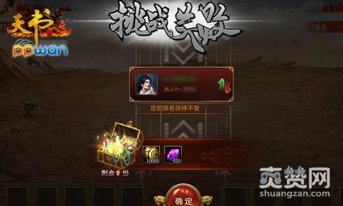玩家可以挑战与自己武将实力相近的对手,也可以挑战竞技排名前5名的玩家。只要你有实力,你就可以一战成名!在ppwan《天书世界》中竞技场前100名的玩家每5分钟可以获得一次积分奖励,竞技排名越靠前,获得的积分就会越高。不过玩家一旦挑战失败,将进入10分钟挑战冷却时间,需要通过消耗元宝清空冷却时间(当然你也可以等待),所以选择对手也非常重要。