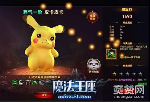 历经40分钟的漫长等待后,小编再次完成了一把普通抽取。最终获得了3个皮卡皮卡碎片,能收集齐这个萌宠也不错喔。起码是小编熟悉的动漫里面的萌宠,高压电是它的重要必杀。51《魔法王座》萌宠高级抽取我们还是简单介绍一下,十连抽可以享受9折优惠。高级抽取不仅可以抽取到萌宠碎片,更可以收获萌宠突破石。萌宠突破石是帮助萌宠提升等级的重要材料,当萌宠升到练气3阶之时,才可以用它来帮助萌宠突破等级。
