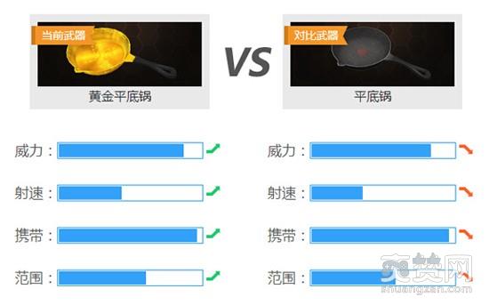 来看看两口锅的属性对比,毫无意外,黄金平底锅在威力、速度、携带和范围上都优于平底锅。