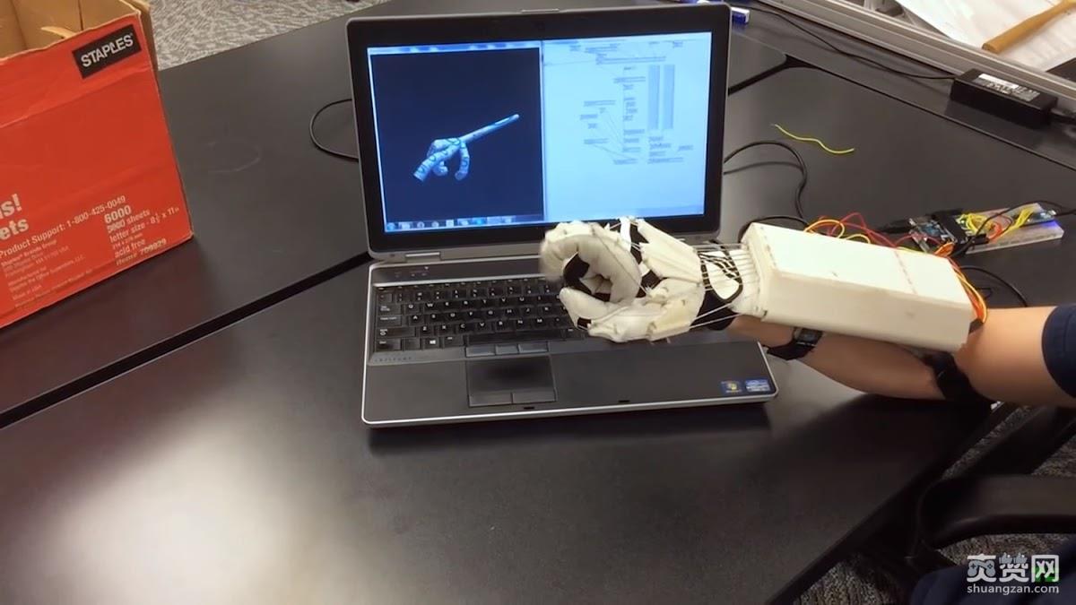 事实上,该原理是借由手臂上的发动机来让手套产生电阻和力回馈,而整组手套也非常贴身,除内嵌复杂的肌腱系统,手指尖端也配有感测器,未来还能有更多不同功能的开发。