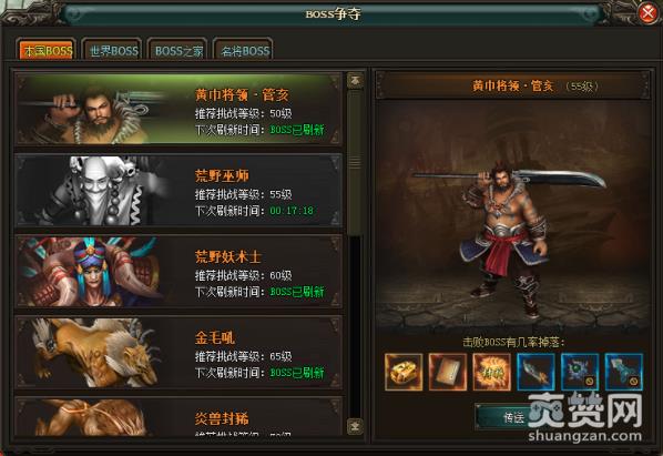 在2018年百变国战网页游戏 《我在三国》里有着各种强大的BOSS分布在各个地图,点击右上方的“BOSS” 就能快速的查询各雷霆战将BOSS的状况和掉落物品。BOSS共有3类,分别是,“本国BOSS”、“BOSS之家”和 “世界BOSS”。BOSS之家内的BOSS从易到难均有。可以通过BOSS界面直接飞到地图内,面板上有显示世界BOSS的刷新时间。对应掉落的物品品质有高有低,难度越高的奖励越丰厚,包括有高品质装备、各种稀有材料、宝石、等等。《我在三国》1月25日首次留档封测!!!