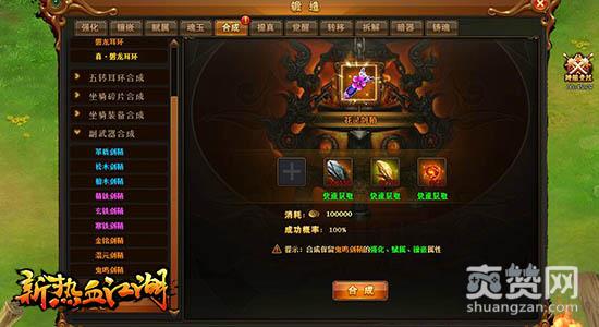 在锻造系统的合成功能中,玩家可以合成自己职业的专属副武器,副武器共有十阶,高阶副武器需要低一阶的副武器作为材料,合成高阶段的副武器还需要额外的精铁、金属与天晶作为材料。
