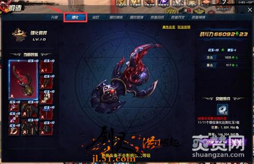 在51《剑灵》中,每个装备部位都需要激活才能强化,激活有等级限制,但没有消耗。强化功能不会受到玩家更换装备而影响强化等级,也同样会在全部部位强化到固定等级后激活强化套装属性。强化分为多个阶段,每一阶段共10级,10级后可以突破到更高等级升到10级后可以突破,突破后才可以继续强化。在此次版本更新中,提升了装备强化等级上限,新增红玉、灵玉2个阶段。
