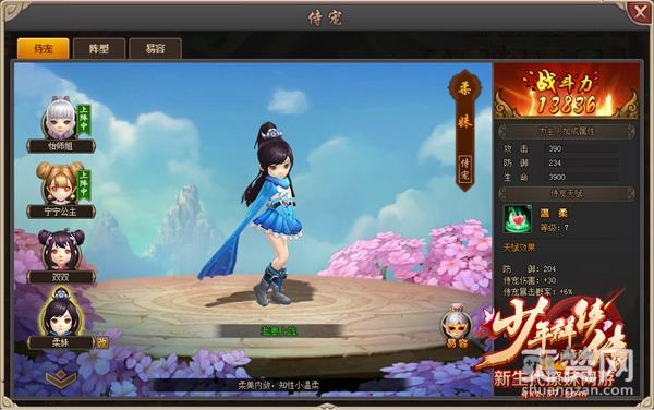 作为游戏的宣传大使,游戏角色是提升整个游戏颜值、俘获玩家芳心的关键所在。《少年群侠传》以大手笔打造了庞大的角色阵容,人物造型Q萌又不失个性,十分讨喜。除帅气的男女主角外,最让人印象深刻的,无疑是一众忠诚有爱、颜值爆表的侍宠萌妹了。为了让玩家体验坐拥后宫的满满幸福感,游戏安排了一大波萌妹纸与玩家展开美丽的邂逅;通过强大的变装系统,玩家还可以为侍宠们挑选更换各种养眼的时装,打造专属的梦幻后宫。