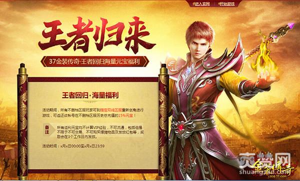 青春回首,往昔有故事有酒,重新踏上玛法大陆。37《金装传奇》百日盛典给您一场声势浩大的游戏盛会。2月5日~2月9日,超级福利大派送,全民参与乐不停。参与活动即可领取礼包奖品。更有老玩家回归惊喜,享受特别为您准备的超值回归福利。好久不见,可曾安好?再次相遇祝福满满,现在开车马上出发!