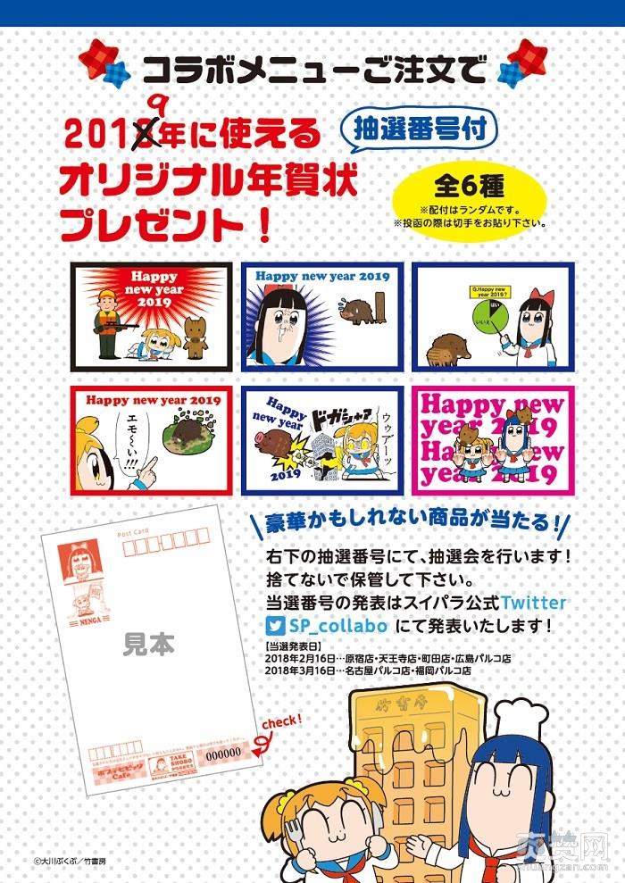 凡惠顾套餐的客人均可以获得《Pop Team Epic》原创贺年卡,而且每一张更附有抽奖号码,有关抽奖的详情可以在推特上留意。