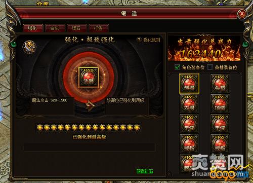 装备可通过多种手段来进行锻造,包括强化、合成、魂石和打造,其中强化是强化某个部位,而非某件装备,免去了玩家更换装备时反复继承属性造成的困扰,且不同部位强化增加的属性不同。当强化达到一定要求,即可激活强化灵魂锁链属性。