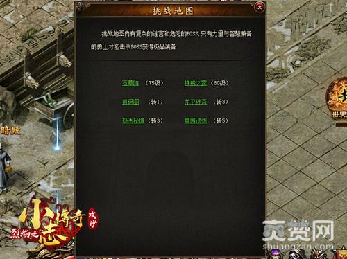 9377小志传奇龙卫迷宫的进入方法,就比较简单了。大家从热砂荒漠城里,找到NPC“挑战地图”对话,就可以看到龙卫迷宫的入口。大家要想进入龙卫迷宫,那么就要满足3转或以上,每天进入次数无限制要求。