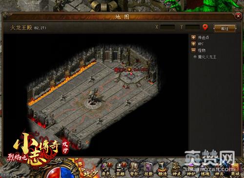 玩家成功走到9377小志传奇龙卫迷宫三层,就会发现火龙王殿的传送口。大家进入到火龙王殿,就能去挑战130级的boss“魔化火龙王”。若你有足够的实力打败这个boss,就会有机会获得5转或以下的各职业转生装备,当然还有其材料奖励的哦。