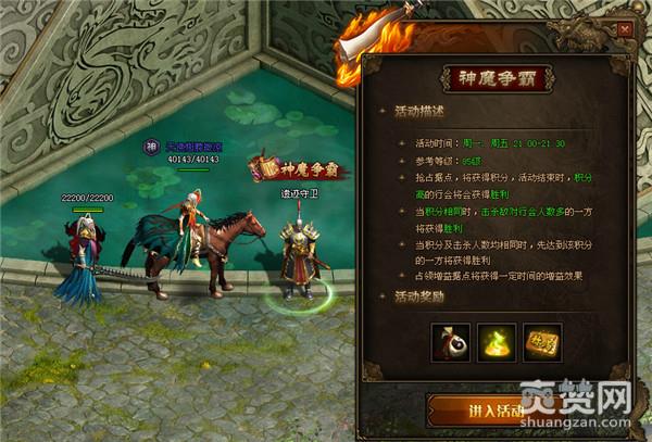 在360uu《传奇世界》网页版中,加入神魔阵营的行会同样也逃不开这场阵营厮杀,神魔争霸也在等待各大行会的加入,双阵营之间的决战等待着你与兄弟的进场。与兄弟一起加入争霸战场,在这里抢夺据点获取积分,击杀敌对行会的对手,所有战绩都将计入积分之中,在争霸战场结束后,以积分高低来决定随后的排名,每周一周五一个半小时的激情厮杀,更有“神魔主宰”的称号等待你来领取,与行会兄弟加入到这场跨服血战中,看谁能笑到最后,在新春即将来临的时刻笑傲神魔!
