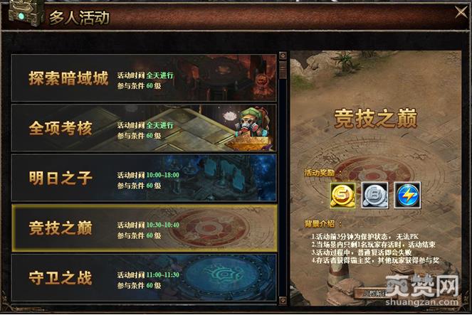 在ya247《硬核帝国》中,该活动为多人PK类活动。开始活动后,前3分钟为伤害保护时间,玩家间无法相互攻击。3分钟后,玩家进入PK状态,互相击杀直至场景内只剩1名玩家存活,活动结束。玩家死亡后,选择普通复活或退出场景,均视为失败。