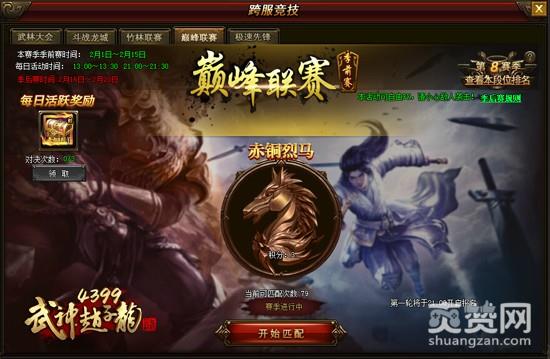 竞技可以说是贯穿玩家整个游戏生活的最重要的玩法啦。咱们升战力干嘛用?当然是PK呀!想和全平台的玩家们练手,当然要选择巅峰联赛啦!《4399武神赵子龙》巅峰联赛为月活动类型的竞技活动,全平台玩家同场竞技!