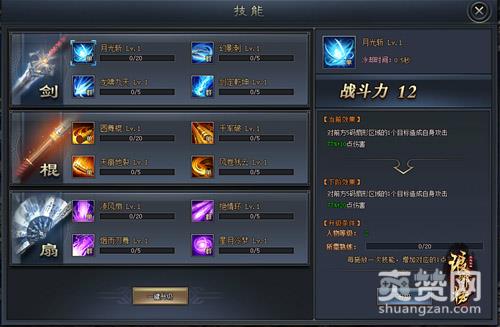 每位玩家起初都会获得“神剑”,单体攻击时可以打出高额伤害;随着历练增加和等级提升,又可以逐步开启有超强群体伤害的“神棍”和在单体攻击与群体攻击中都有出色表现的“神扇”。