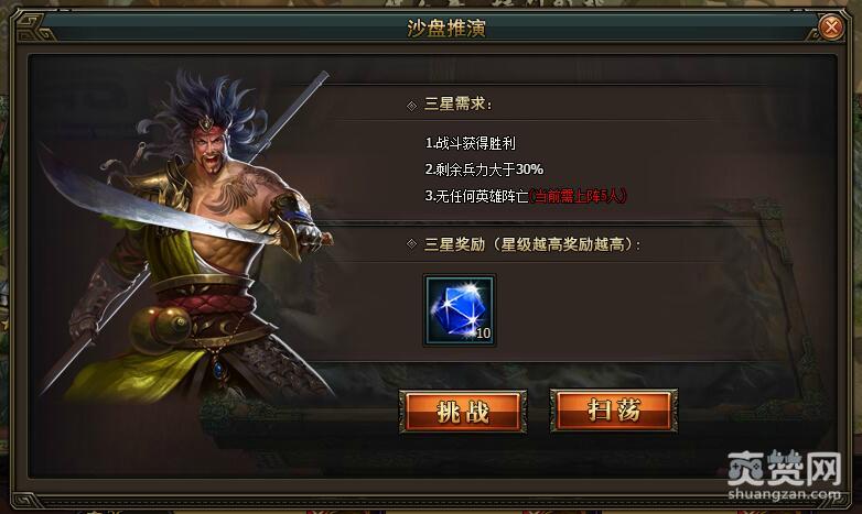 武将第六阶的天赋需要6阶天魂石。扫荡的对象选择甘宁画像的比较适宜。因为它给的是10颗6阶天魂石。