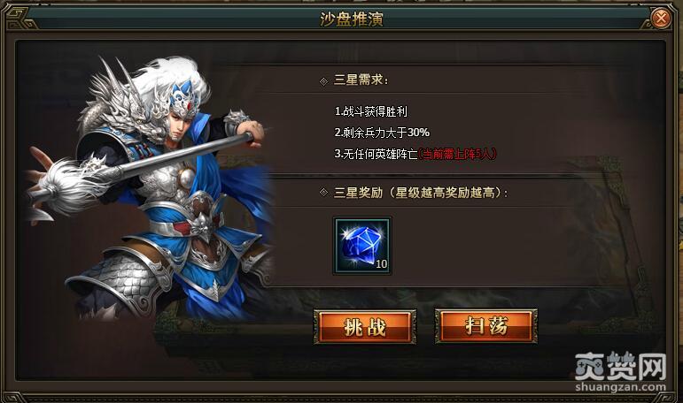 武将第五阶的天赋需要5阶地魂石。扫荡的对象选择吕布画像的比较适宜。因为它给的是10颗5阶地魂石。