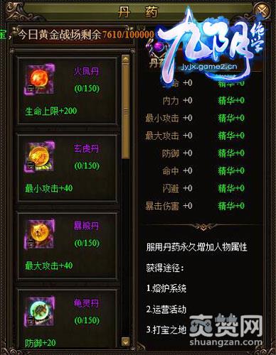 3、使用50个紫色丹坯+20个金身丹坯合成1个金身丹药。