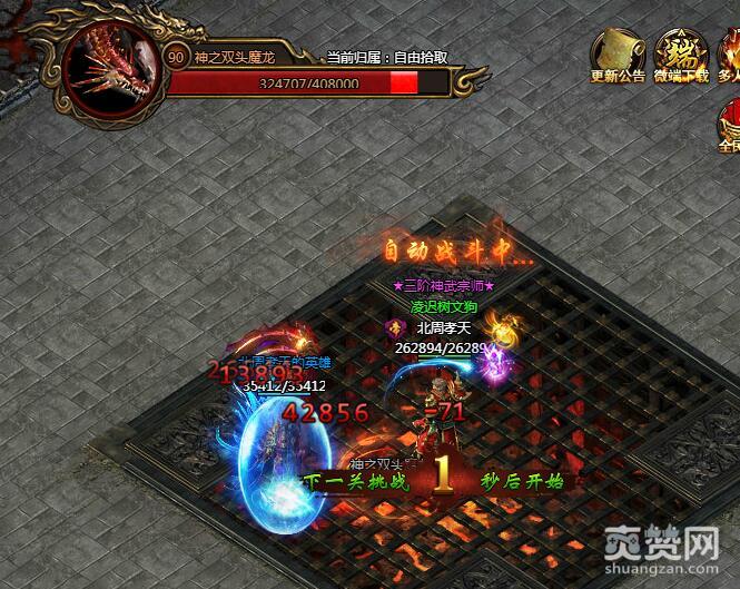 第17层BOSS:神之双头魔龙。408000点血,等级90级。