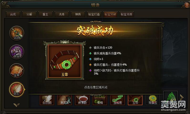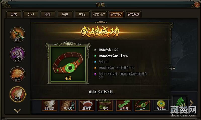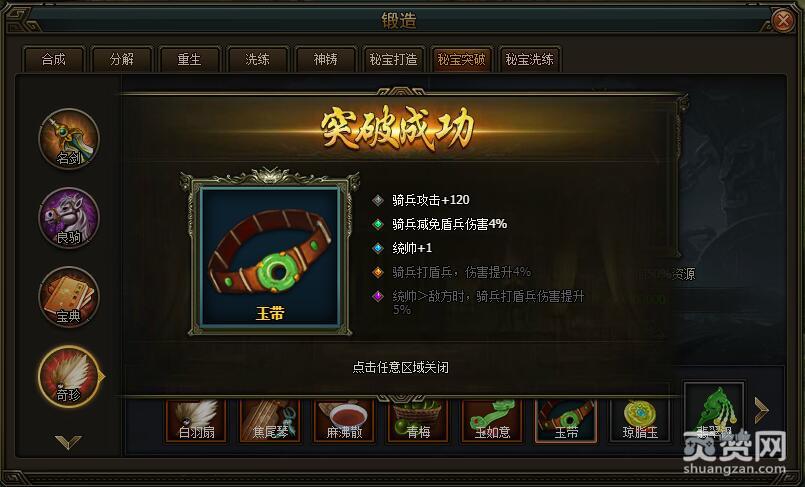玉带秘宝属性2:骑兵减免盾兵伤害4%
