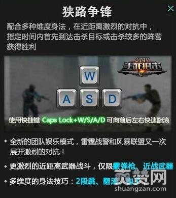 首先,“狭路争锋”模式是《4399生死狙击》全新的团队娱乐模式,进入战场后同样是分为雷霆战警和风暴联盟2个阵营,双方阵营将在此再次展开激烈的对战!
